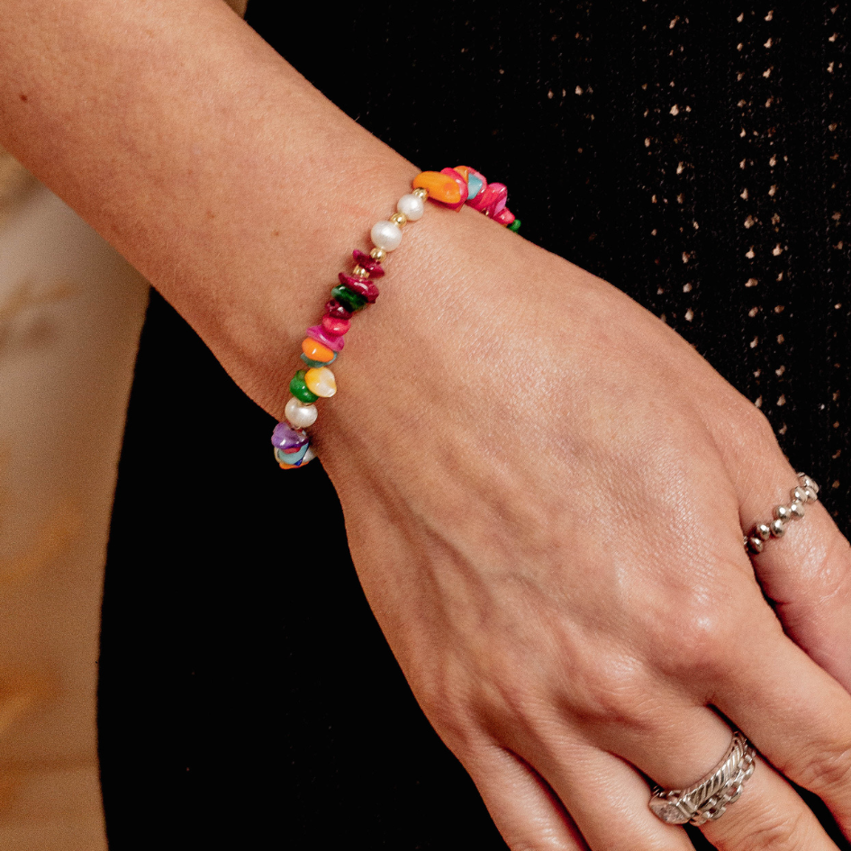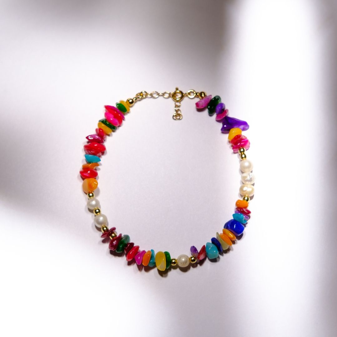 Ta bransoletka to jak krąg światła wokół Twojego nadgarstka. Kolory – tak intensywne, że przyciągają wzrok. A jednocześnie – tak miękkie, że leczą.