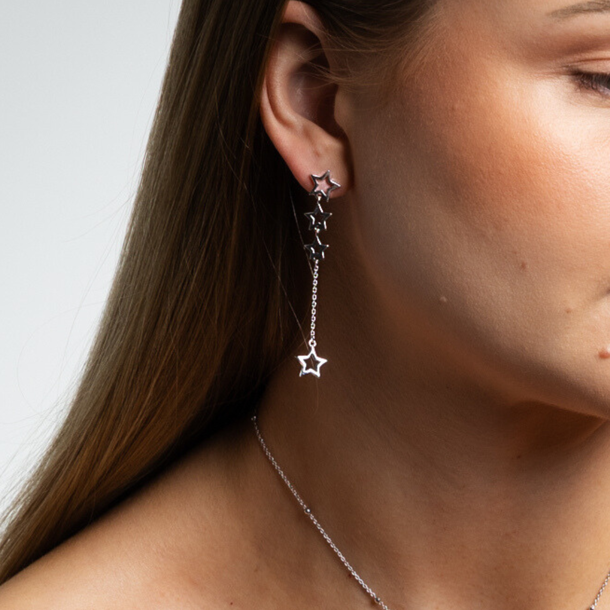 Te subtelnie wiszące gwiazdki wykonane są ze srebra próby 925 i pokryte rodem, aby zachować ich blask i odporność na codzienne noszenie. To Twoi strażnicy marzeń - delikatni, a jednocześnie pełni mocy.