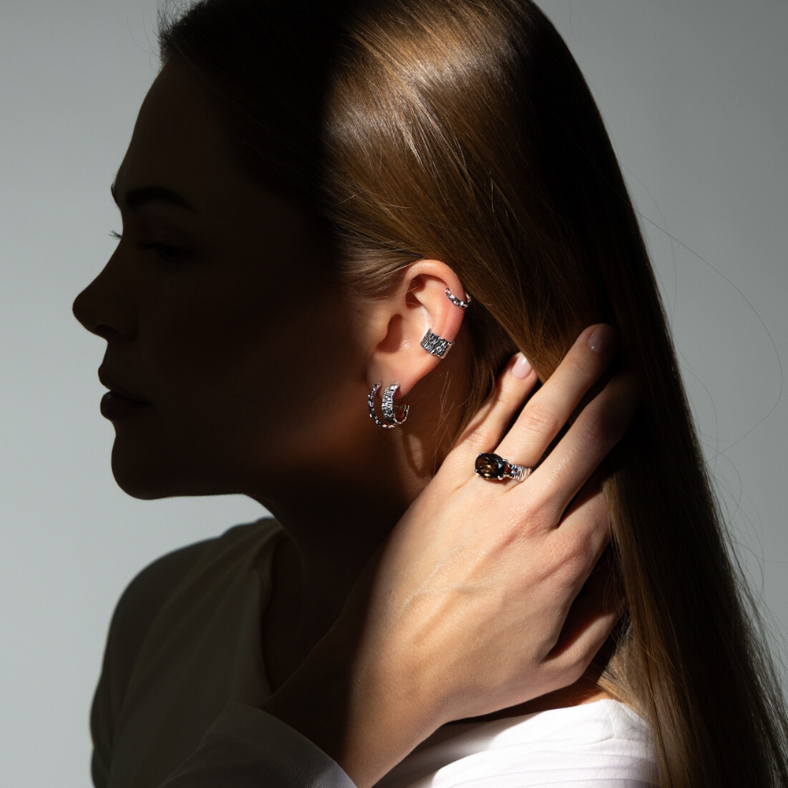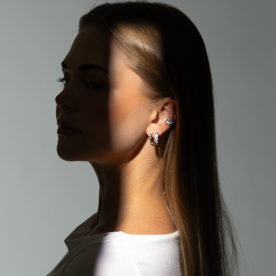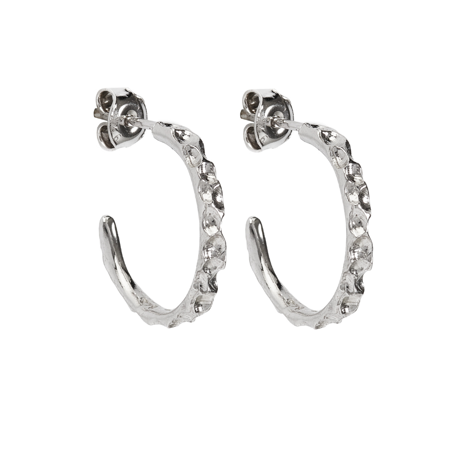 Kolczyki Sparkle na sztyfcie, o delikatnie falującej, perlistej fakturze, zostały wykonane ze srebra próby 925, by otaczać Cię ochronnym blaskiem.