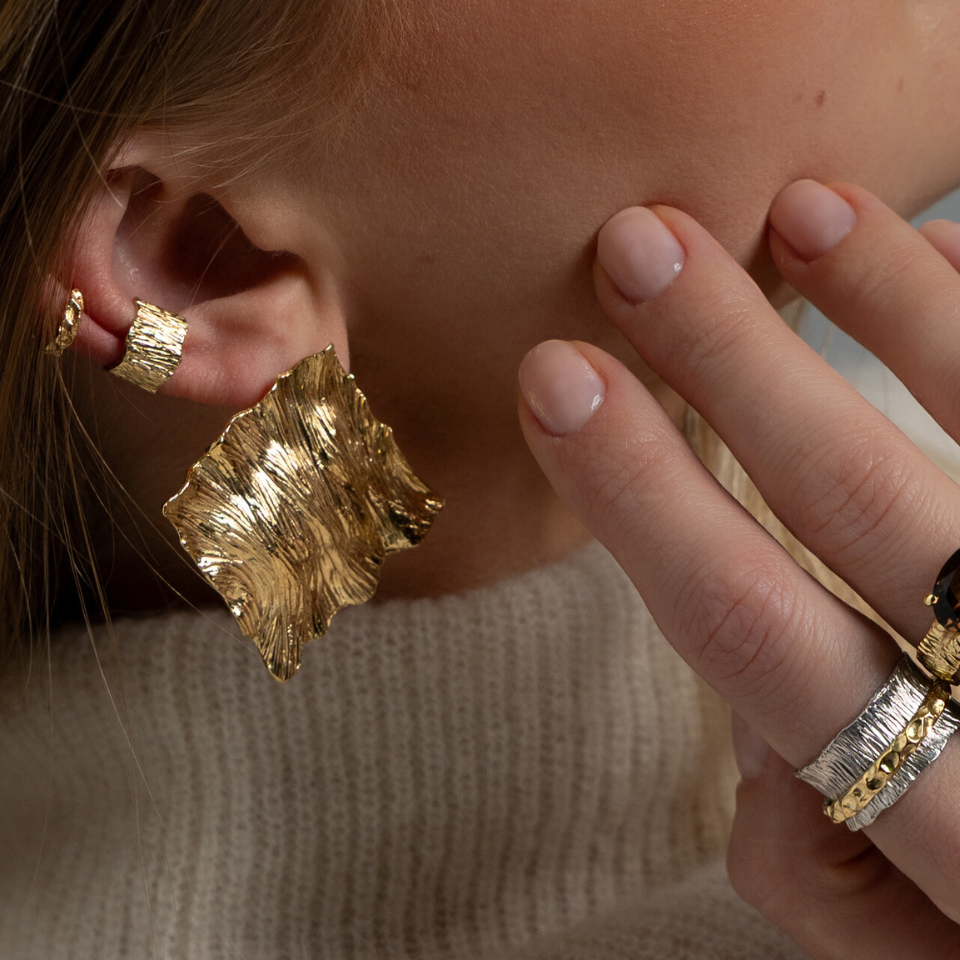 Te kolczyki to więcej niż biżuteria - to strażnicy Twoich marzeń. Wykonane ze srebra oczyszczonego ze wszelkich energetycznych naniesień, próby 925 i pokryte 24 karatowym złotem, emanują intencją ochrony i przemiany.
