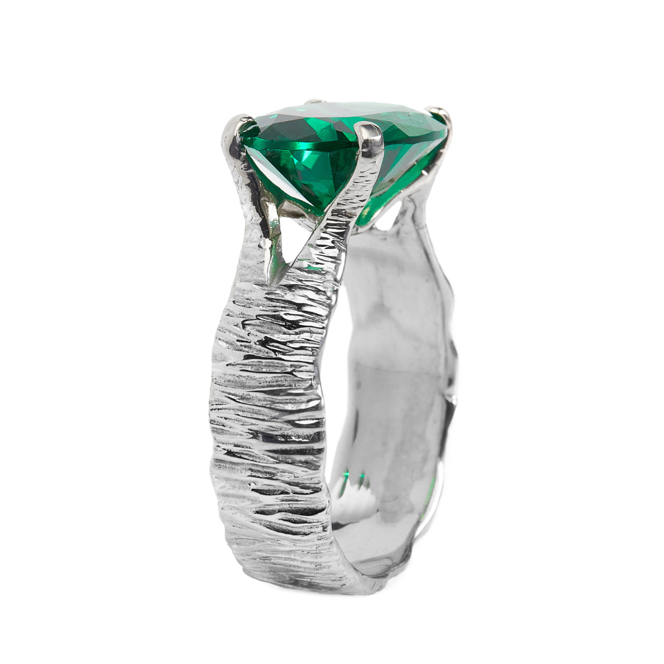 Owalny zielony kamień symbolizuje wzrost, odrodzenie i wewnętrzną równowagę.