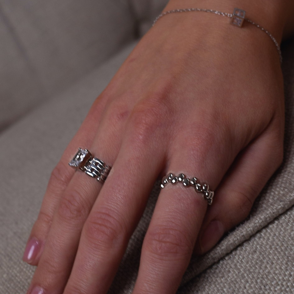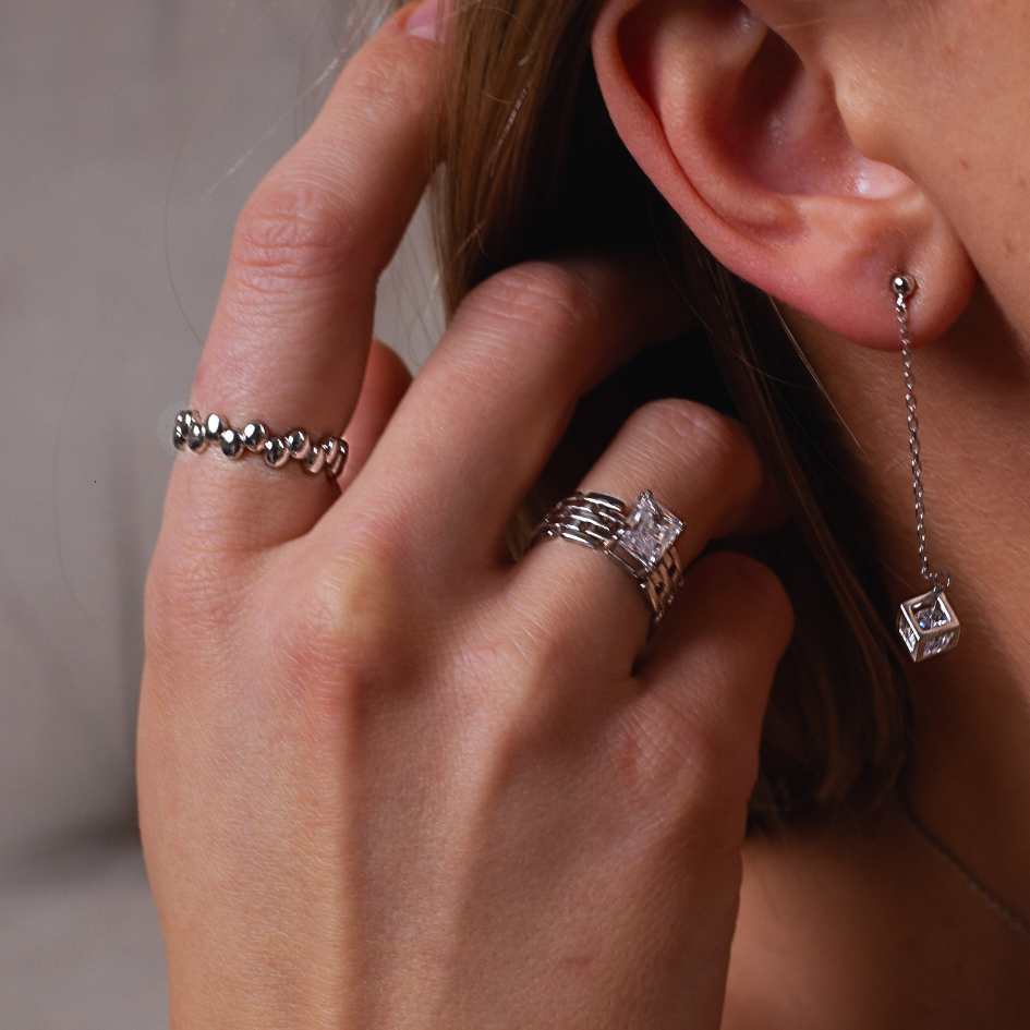 Free Flow to pierścionek inspirowany ruchem – myśli, ciała, pragnień. Jego organiczna forma symbolizuje wolność wyboru i powrotu do siebie. Każdy wypukły element to jak oddech, którym znów przypominasz sobie: „mogę.”